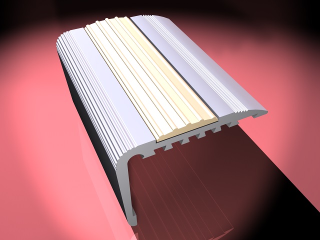 Universal einsetzbares Profil zum Aufkleben. Profil zur Sanierung von Stufen aus Naturstein, Terrazzo, Estrich und Holz. Nachträglicher Einbau auf fertigen und endbeschichteten Stufen, sowie bei Reparatur der Stufenvorderkanten, zur Abdeckung und Vermeidung kleinerer Ausbrüche.