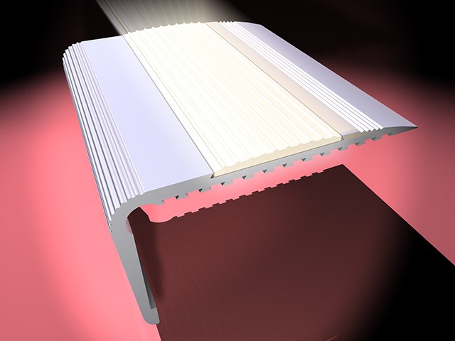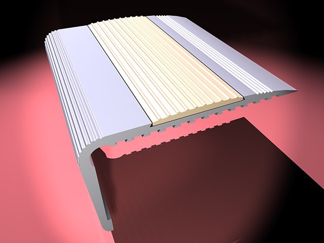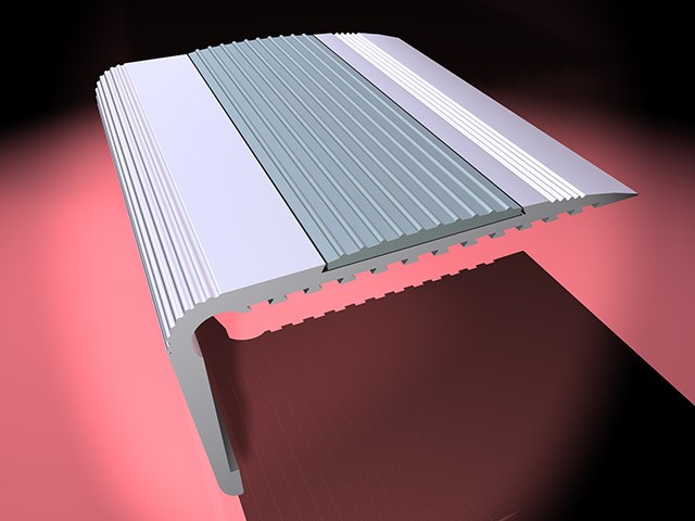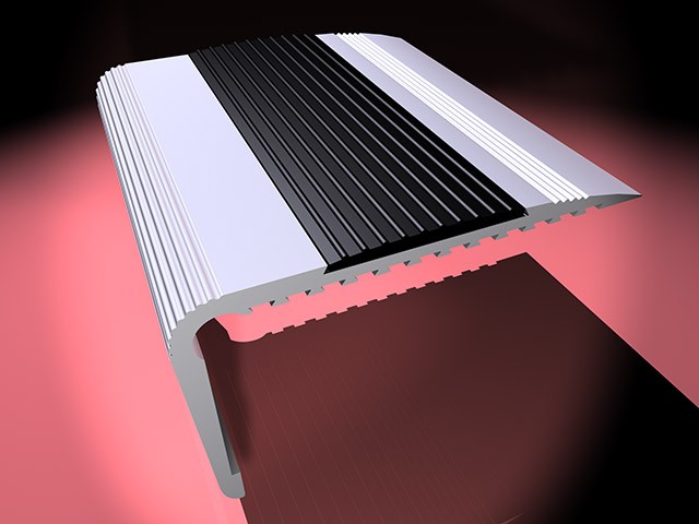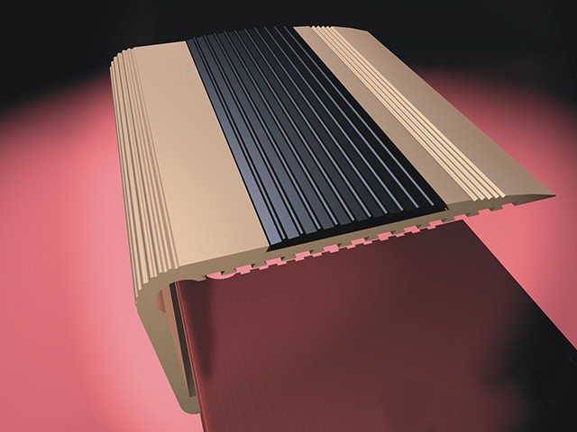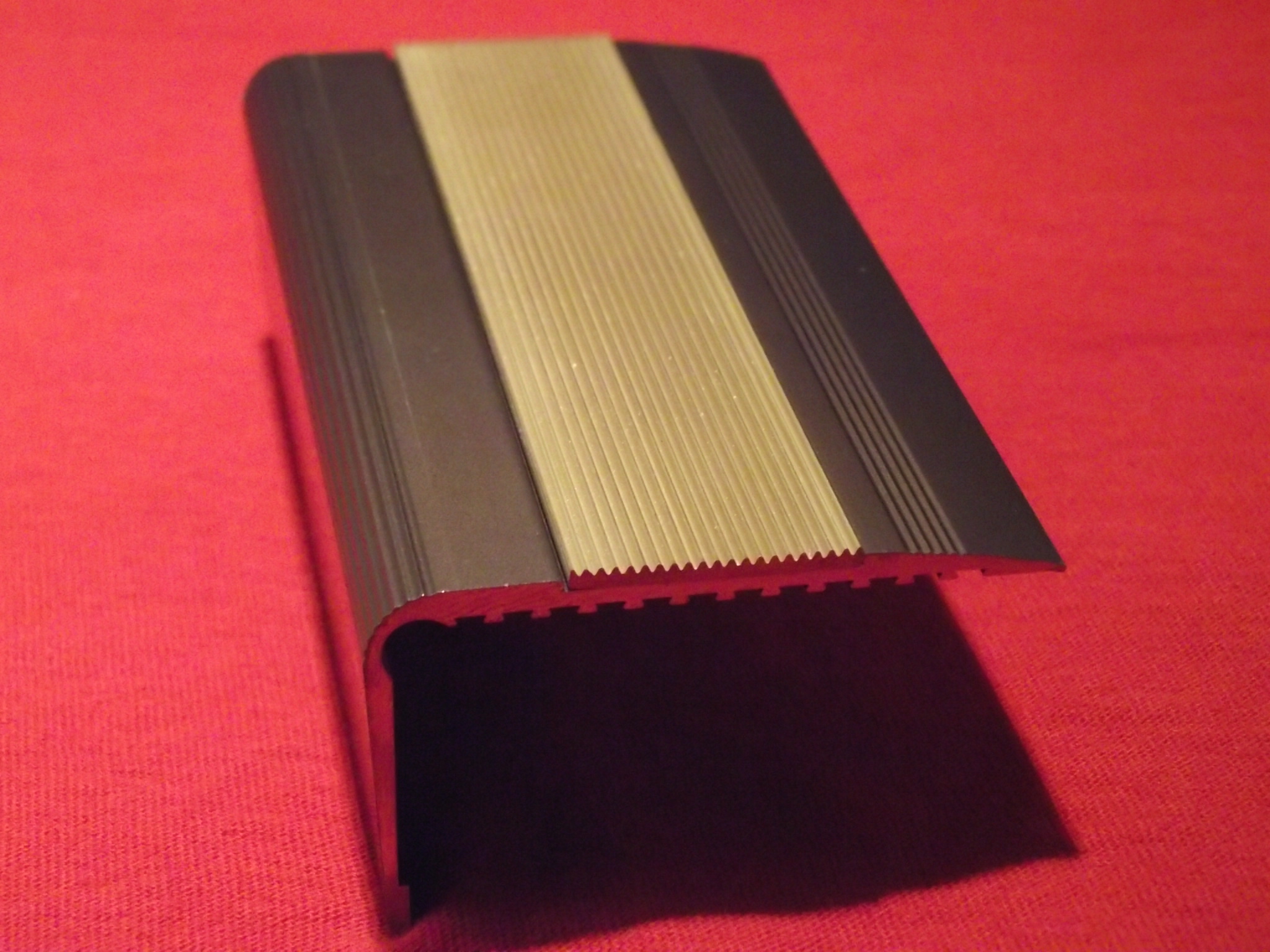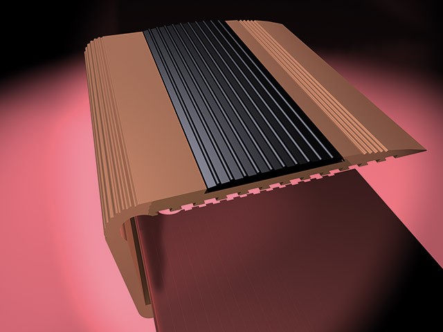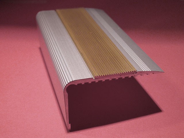 Universell einsetzbares Profil zum Aufkleben oder Verschrauben. Profil zur Sanierung von Stufen aus Naturstein, Terrazzo, Estrich und Holz. Neuverlegung auf fertigen und endbeschichteten Stufen, sowie bei Reparatur der Stufenvorderkanten, zur Abdeckung und Vermeidung von Ausbrüchen.