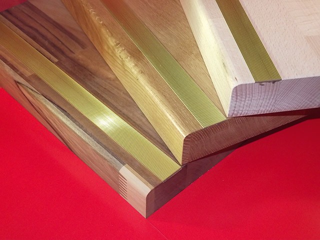 Der Abrieb in der Gehlinie der Holzstufen wird durch den Einsatz dieses Profils extrem verringert, die Stufenkanten sind außerdem besser sichtbar.